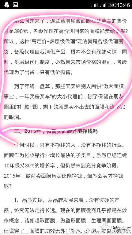 日前曝光的微商中搞微传销的项目 、涉及CBB 、WV、四叶草三个品牌。选择微商请选择正规的微商上来拿货,讲课的都属于传销!正儿八经微商都是实打实的销售!